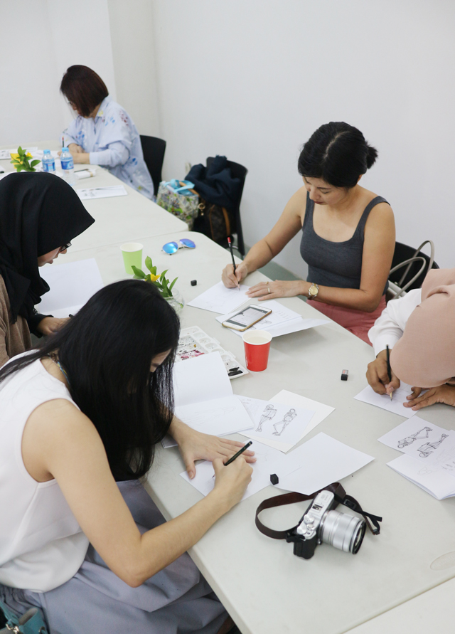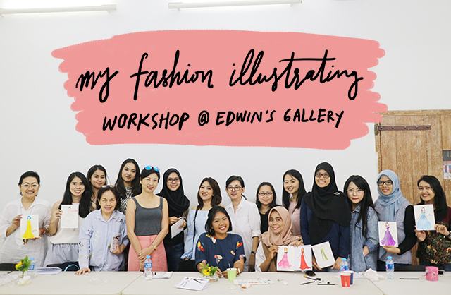 Besides having live illustrating sessions at Edwin’s Gallery FashionArt Market, I also had my fashion illustrating workshop there. This is probably my second or third workshop this year, I’ve been very slow in hosting workshops or private sessions this year. First, because after I got married, I moved around so much and it was pretty hard to catch up and hold workshop. Second, I realised that hosting workshop really take a lot of time and efforts from my end. I have an intern who helped me doing workshops last year, but as this year the number of workshop is pretty limited, my intern helped me remotely and I did all the on-the-day preps by myself. But don’t get me wrong, I really enjoy my time doing workshop, talking in front of the participants, sharing all my tips and tricks in learning how to create fashion illustrations. But as I am half introvert, meeting a lot of people and talking constantly for two hours is a challenge, even until now. The third reason is simply I want to take a step back and learn more this year. I want to be able to have enough time to feed myself knowledge and new skills. Anyway, let’s talk more about my workshop last weekend!